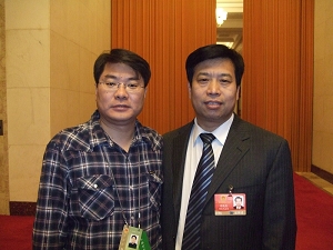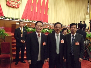 李曉恩代表與記者在第十一屆全國(guó)人大二次會(huì)議上合影留念